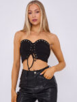 Lace Up Front Bandeau Top With Metal Eyelet Detail